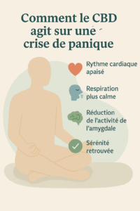 Le CBD peut être un allié précieux contre les crises de panique, en apaisant le corps et l’esprit sans effet secondaire lourd. Utilisé en prévention ou en soutien ponctuel, il favorise le retour au calme, restaure la sérénité intérieure et accompagne efficacement une prise en charge globale (thérapie, respiration, hygiène de vie).